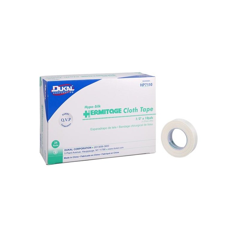 Hermitage Surgical Tape Silk Cloth .5"x10yd White Non-Sterile 24/Bx